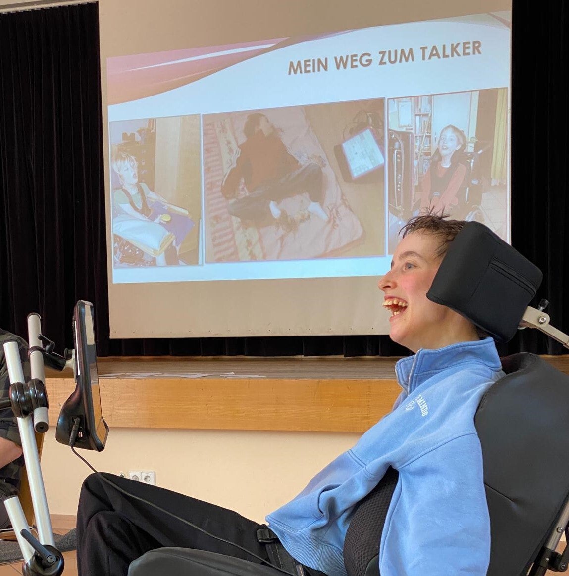 Aufgrund meiner körperlichen Beeinträchtigung kann ich weder laufen noch sprechen, bin aber im Kopf topfit und verstehe alles.